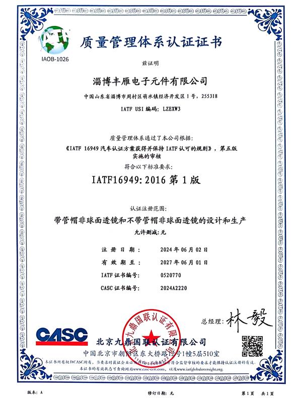 淄博豐雁電子元件有限公司,是一家集研發、生產、銷售為一體的透鏡管帽、晶體諧振器、晶體濾波器的高新技術企業。成立于1992年,坐落于山東省淄博市周村區,注冊資金1000萬元,擁有職工150余人,公司占地35000平方米,其中擁有5000平方的超凈化廠房,并配備了千級凈化工作臺,確保環境的凈化度。公司下設光電事業部,濾波器事業部,晶體事業部等多個事業部。專注為光通訊、激光器領域以及各種電子應用領域進行電子元件配套。公司于1999年通過了ISO9000質量體系認證,公司提供的所有產品符合歐盟的R0HS和REACH標準。公司被認定為淄博市“專精特新”企業、“淄博市企業技術中心”、省級“專精特新”企業、“山東省制造業單項冠軍”。公司擁有持續創新的研發團隊,有常年的外聘技術專家長期指導,并且與國內多所大學和光電研究所保持長期合作關系,確保了產品和技術的先進性,能持續為客戶提供高質量的產品和更好的全方位服務。